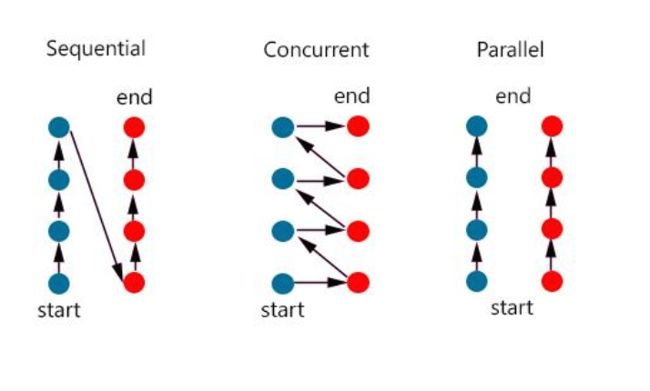 - 싱글 코어 CPU를 이용한 멀티 작업은 병렬적으로 실행되는 것 처럼 보이지만 실제로는 동시성 작업임!
