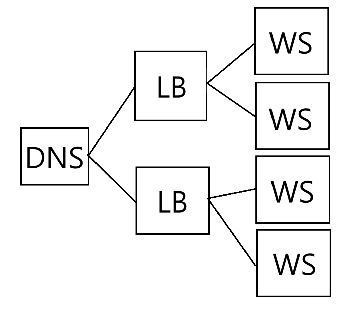 이 설계는 DNS와 Load Balancer(LB)를 활용해 트래픽을 효율적으로 분산시키고, 시스템의 확장성과 가용성을 높이는 구조이다.