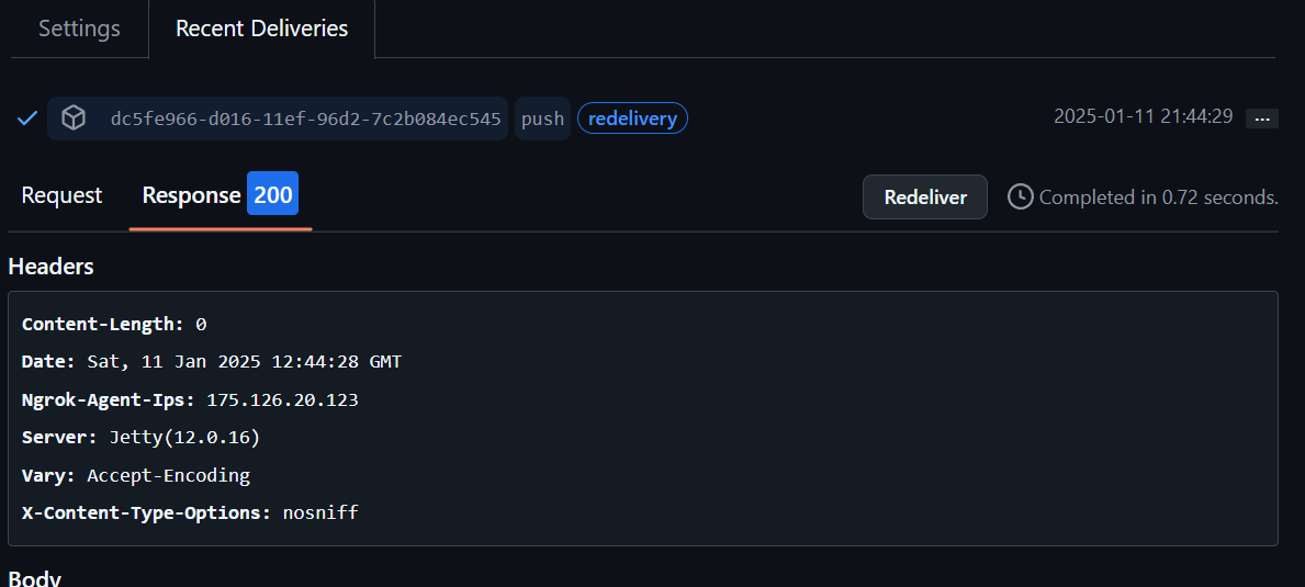 Jenkins 와 Git 의 Webhooks 를 연동하고 프로젝트를 push 하였는데 Jenkins에서 캐치하지 못하여 자동적으로 빌드가 되지 않았다. 그래서 Jenkins 에서 잘못 설정된 것인지 Git 에서 잘못 설정된 것인지 확