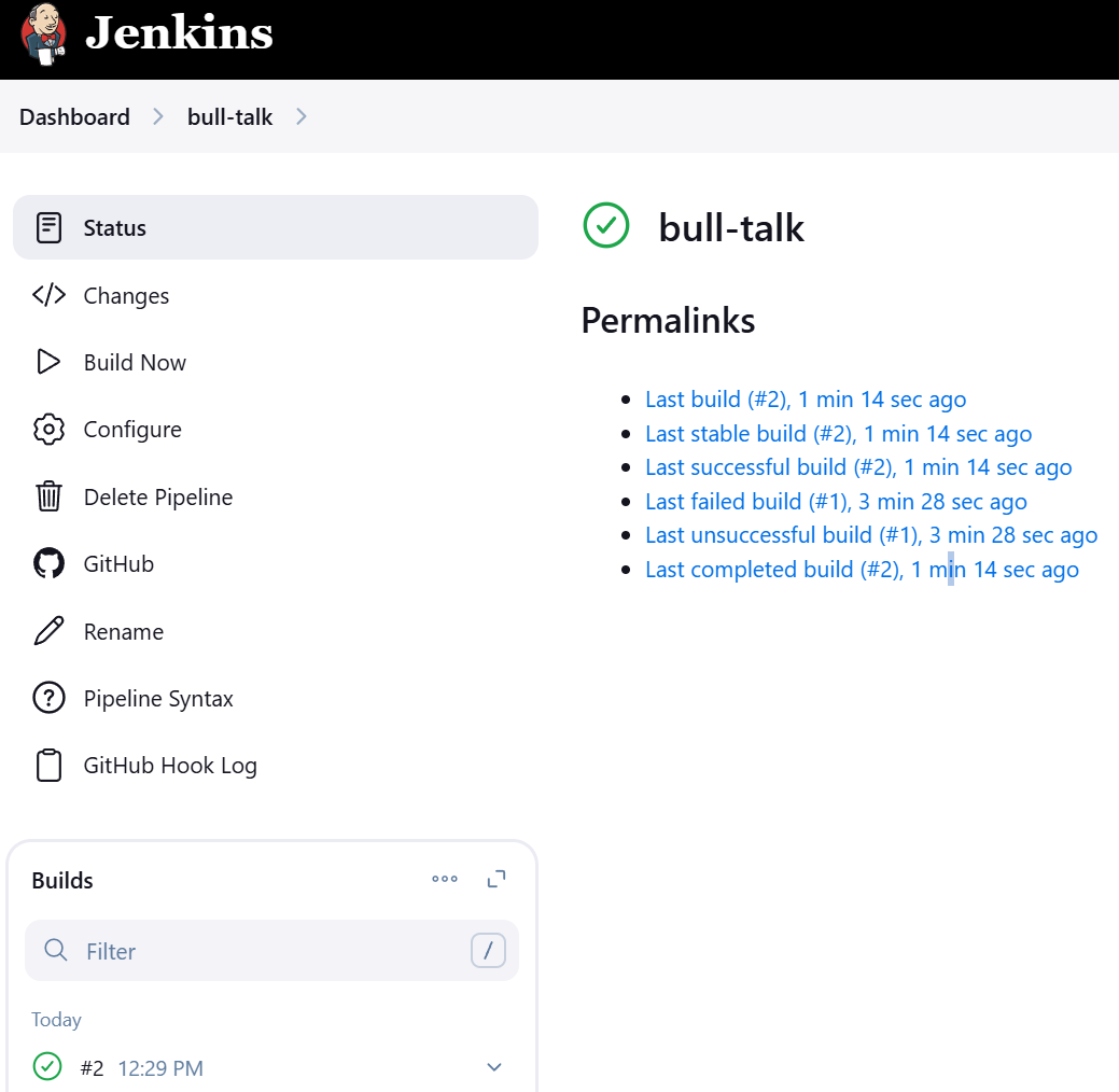 수정 사항 있어서 git에 push 했더니 webhook으로 보내고 jenkins에서도 빌드 성공!