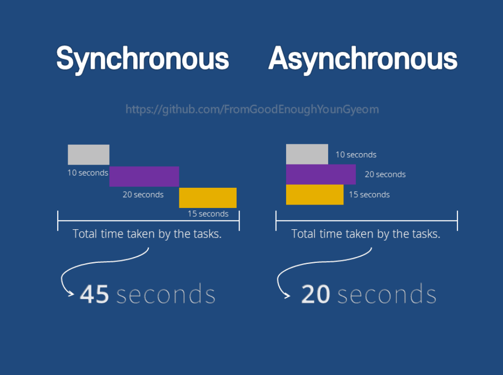 - 작업이 시작된 후 결과를 기다리지 않고, 호출자가 다른 작업을 계속 수행할 수 있는 방식 이다.