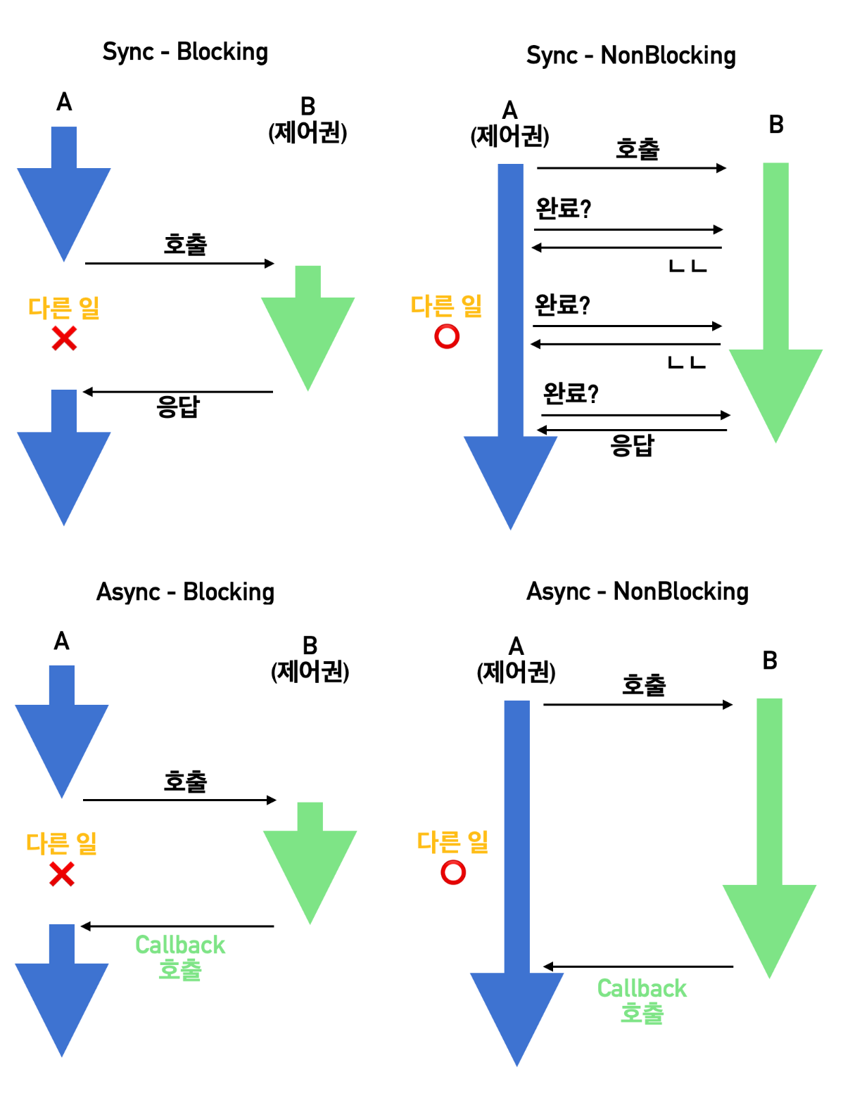 | 특징 | 비동기(Asynchronous) | 논블로킹(Non-blocking) |