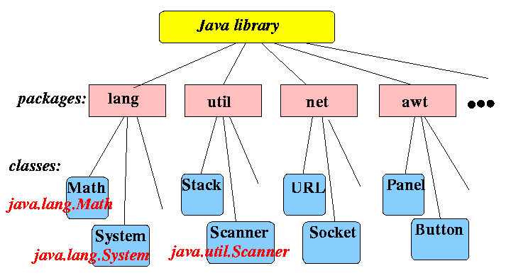 Java에서는 우리가 원하는 모든것은 객체 즉 class 단위로 작성하여 프로그램을 작성한다. 우리가 작성하는 class외에 Java에서는 미리 자주사용되고 유용한 기능을 하는 class들을 만들어 놓고 제공을 한다. 이클래스들을 관련된 기능별로 분류하여 패키지단위로 묶어서 관리하는데 이 패키지 파일을 라이브러리 라고 한다!