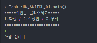 System.out.println("1.학생 / 2.직장인 / 3.무직");
