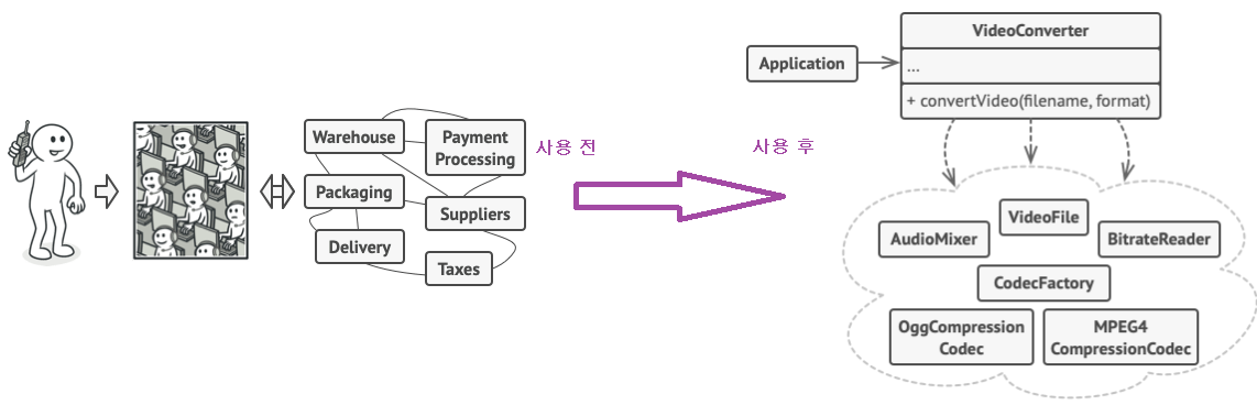 - Subsystem으로부터 Client를 보호하고 Client가 Subsystem을 사용하기 쉽게 만들어 준다.